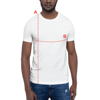 Place the end of the tape beside the collar at the top of the tee (Highest Point Shoulder). Pull the tape measure to the bottom of the shirt.